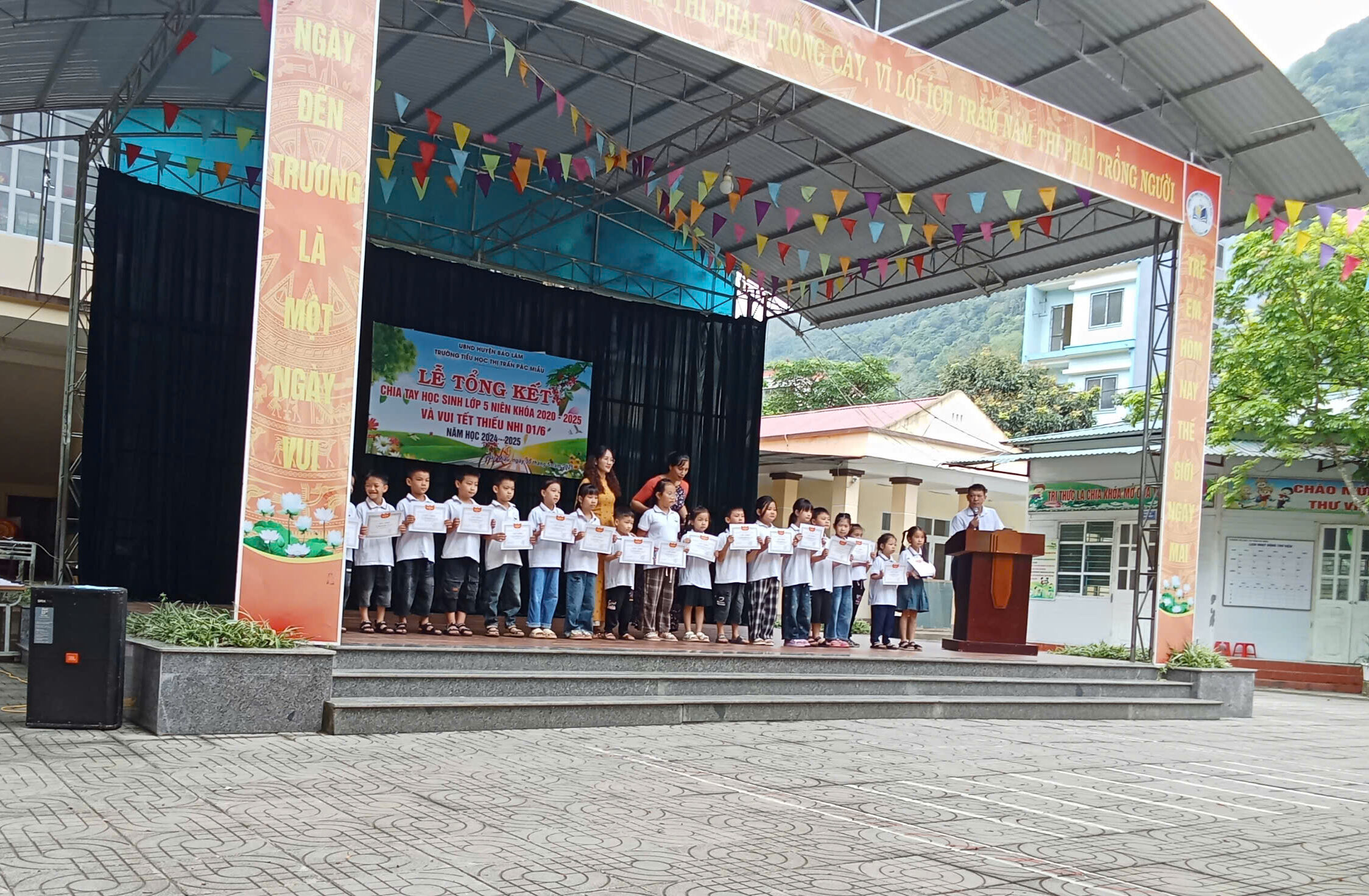 Buổi lễ tổng kết còn tổ chức chia tay học sinh lớp 5 niên khóa 2020-2025, đồng thời tổ chức tết thiếu nhi 01/06 cho toàn thể các em học sinh.